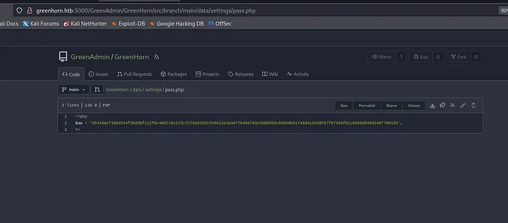 After a bit of searching, we can find a pass.php inside GreenAdmin repository. data/settings/pass.php