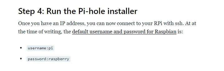 So we can try a default credentials for ssh of a raspberry pi, which is pi:raspberry.