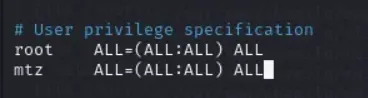 mtz ALL=(ALL) NOPASSWD: ALL